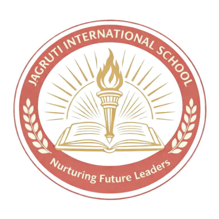 Our emblem reflects the spirit and vision of Jagruti International School. The torch represents knowledge and enlightenment, while the open book signifies academic excellence and wisdom. The rising rays symbolize hope and a bright future, and the laurel leaves stand for achievement and leadership.